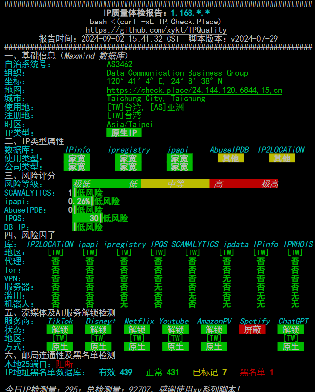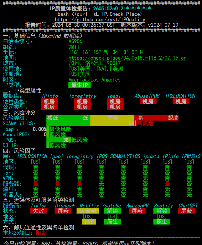 bash <(curl -sL IP.Check.Place)DMIT-美西三网CN2GIA-7402U-49.9刀款(自己弄的DNS解锁)