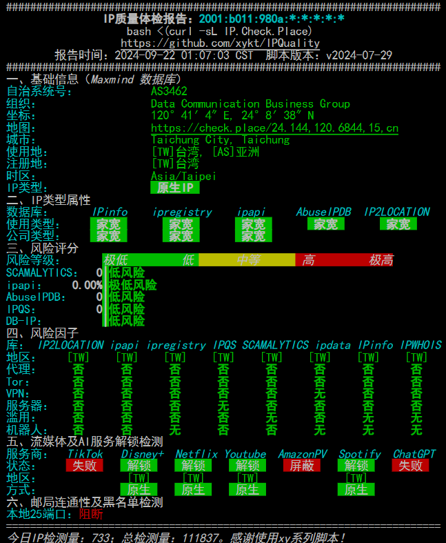 ----------------流媒体解锁--感谢RegionRestrictionCheck开源--------------