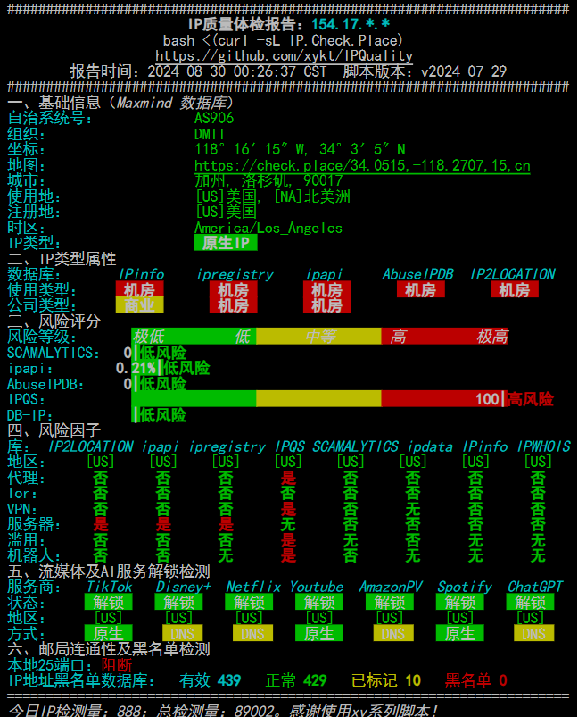 IPV4 位置 : Los Angeles / California / US