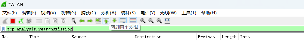 使用过滤表达式tcp.analysis.retransmission过滤所有tvp重传数据包