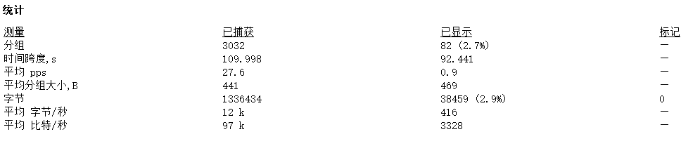 打开统计选项»捕获文件属性,其中会显示被筛选出来的数据占比